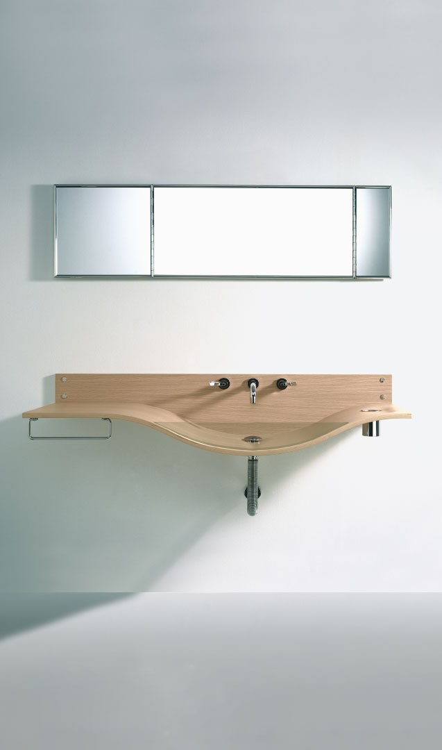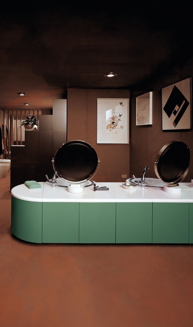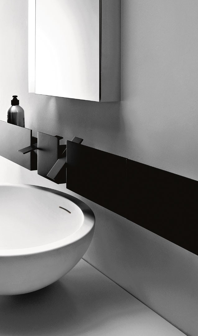 The Flat system debuts, a system of countertops for the washbasin area as an alternative to conventionally compact bathroom compositions.