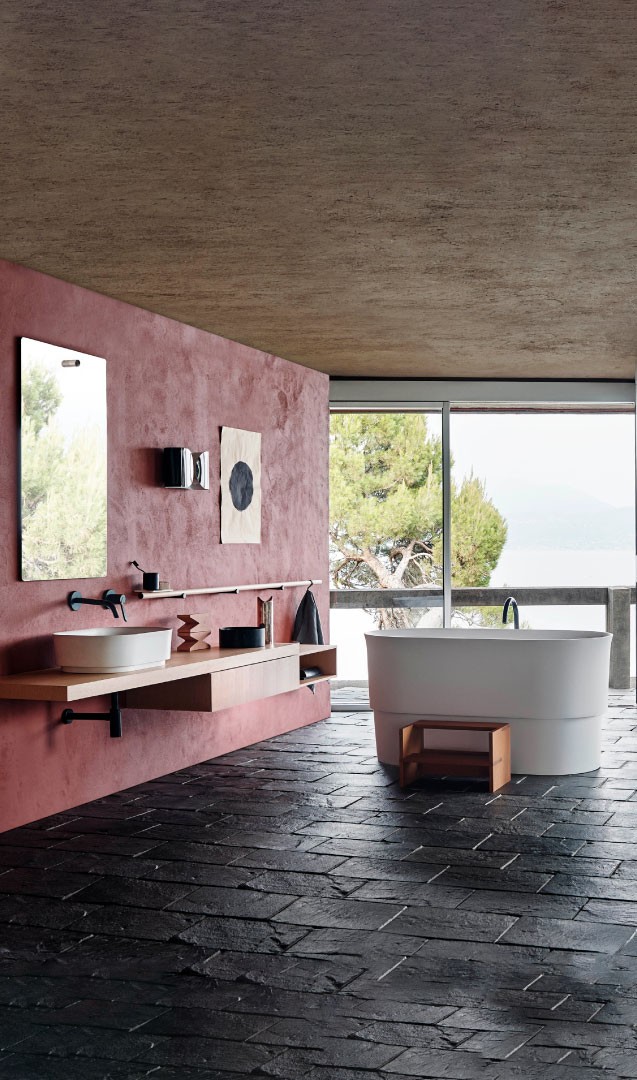 The Immersion bathtub and washbasin, inspired by Eastern bathing traditions, marks the beginning of the collaboration with Neri&Hu.