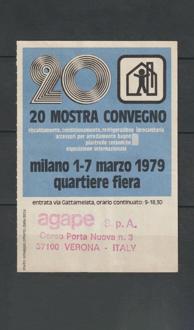 Adriano Benedini along with his cousins Luigi and Gianfranco, establishes Agape with headquarters in Verona. Giampaolo Benedini, simultaneously engaged in a number of jobs at his newly established design studio, is part of the corporate structure from the beginning.