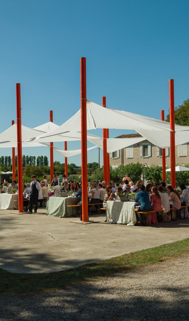 The new headquarters project in Valdaro encounters unexpected problems. In search of a temporary solution for office expansion, an old agricultural court in the heart of the Mincio Park is purchased: Corte Bosco. Renovation work begins.
